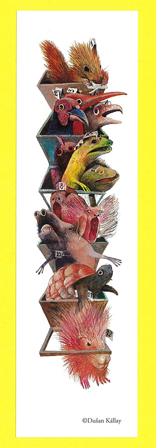 イラストはドュシャン・カーライです。スロバキアの色彩の魔術師とも絵本の魔術師とも呼ばれる大家ですが、カーライご本人の許可をいただき、掲載可能となりました。