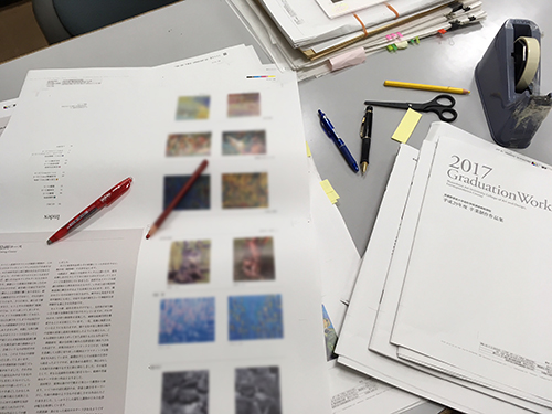 平成29年度 本学通信教育過程を卒業された皆さんの卒業制作作品集を「あとはおまかせします」という責了で、印刷所へ戻すための作業をしました。